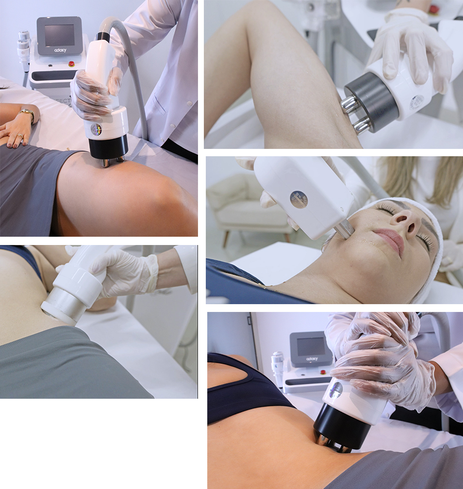 A tecnologia conta com ponteiras exclusivas e específicas para cada região do corpo, permitindo tratamentos personalizados para face, corpo e áreas íntimas, garantindo máxima eficiência e conforto.